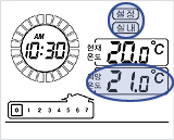 1.현재시간이 맞는지 확인하세요.온도조절기 시간과 현재시간이 맞지 않을 경우 시계를 먼저 맞춰 주세요.(외출/편리기능의 현재시간 맞추기 참조)