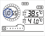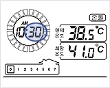 4.시간 및 AM/PM부분이 깜박거릴 때 다이얼을 돌려 현재 시간 및 오전 오후를 맞추세요.시간과 오전/오후를 맞추면 잠시 후 자동으로 저장됩니다.※ 메인온도조절기에서 시간설정을 완료하면 각방 온도조절기로 자동전송됩니다.