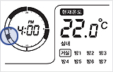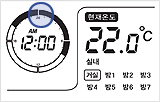 3.온수/설정(외출/설정)버튼을 누르세요.'분' 설정이 끝나고 '시간' 과 'AM/PM' 부분이 깜박입니다.