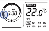 4.시간 및 AM/PM부분이 깜박거릴 때 + 또는 - 버튼을 눌러 현재 시간 및 오전 오후를 맞추세요.시간과 오전/오후를 맞추면 잠시 후 자동으로 저장됩니다.※ 메인온도조절기에서 시간설정을 완료하면 각방 온도조절기로 자동전송됩니다.