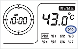 1.온수조절/예약설정버튼을 누르세요.LSD 창에 '온수' 표시와 온도 부분이 깜박거립니다.