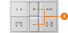 1.난방버튼을 눌러 실내난방을 선택하세요.LSD 창에 '실내' 표시가 깜박거립니다.