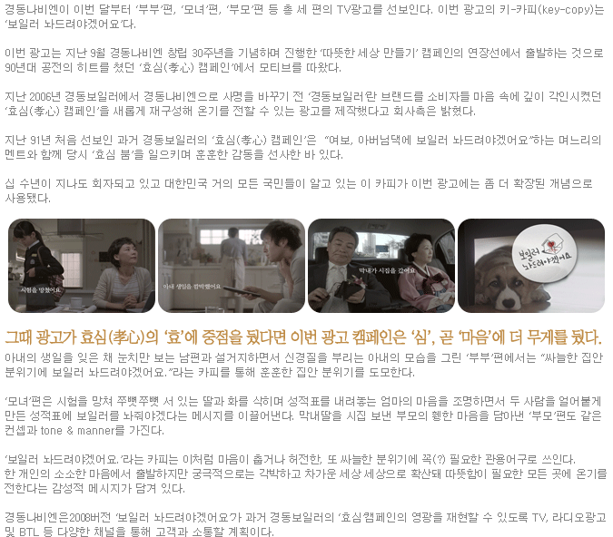 2008년 새롭게 태어난 ‘보일러 놔드려야겠어요’ 과거 경동보일러 ‘효심’ 붐 다시 일으켜