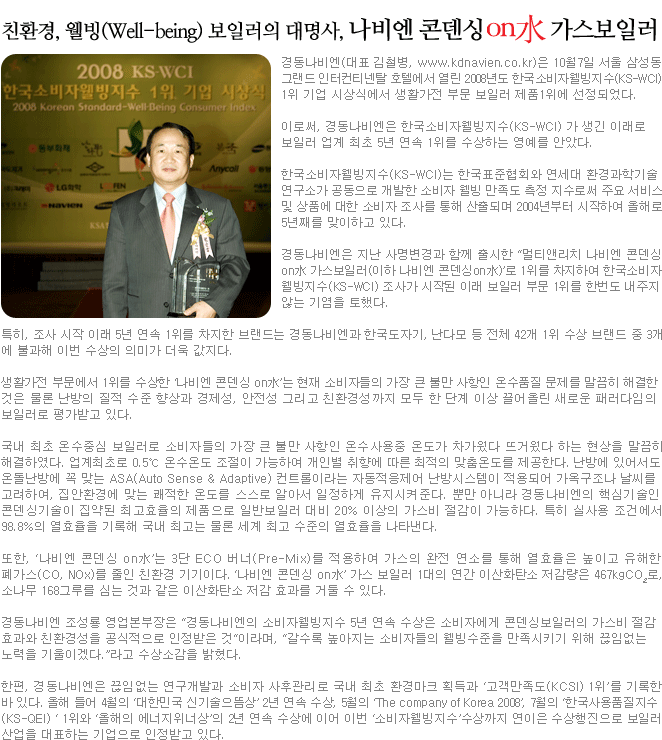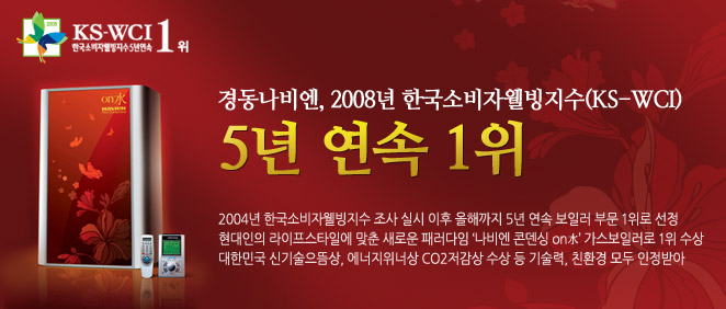 경동나비엔, 2008년 한국소비자웰빙지수(KS-WCI) 5년 연속 1위