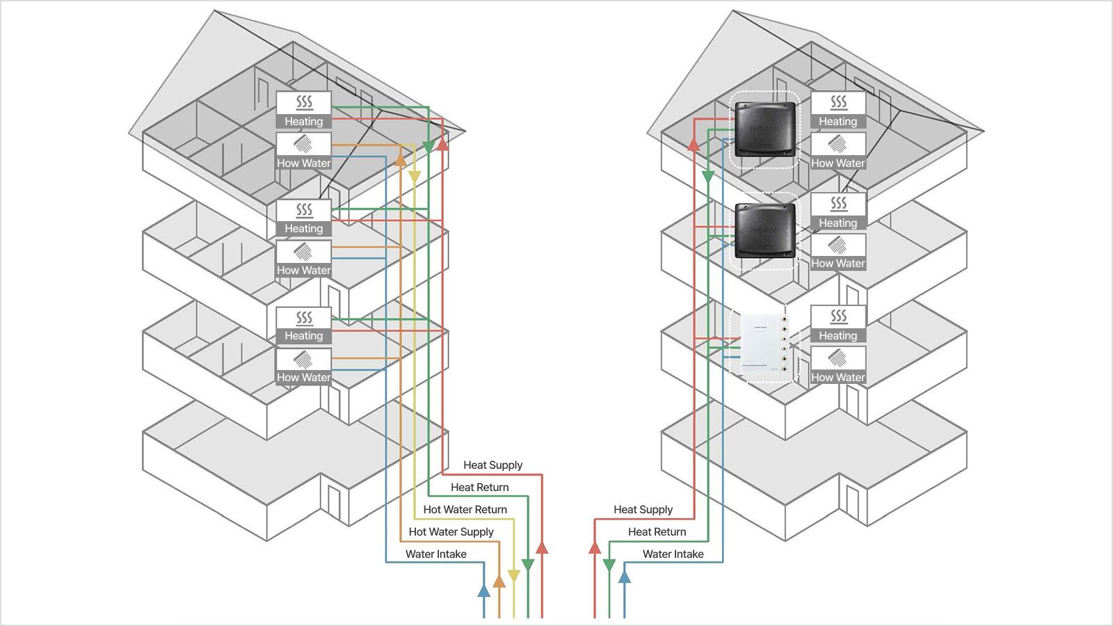KD Navien has introduced the Heaty Hub system that allows a built-in home heat exchanger to provide heating and hot water using centralized heat.