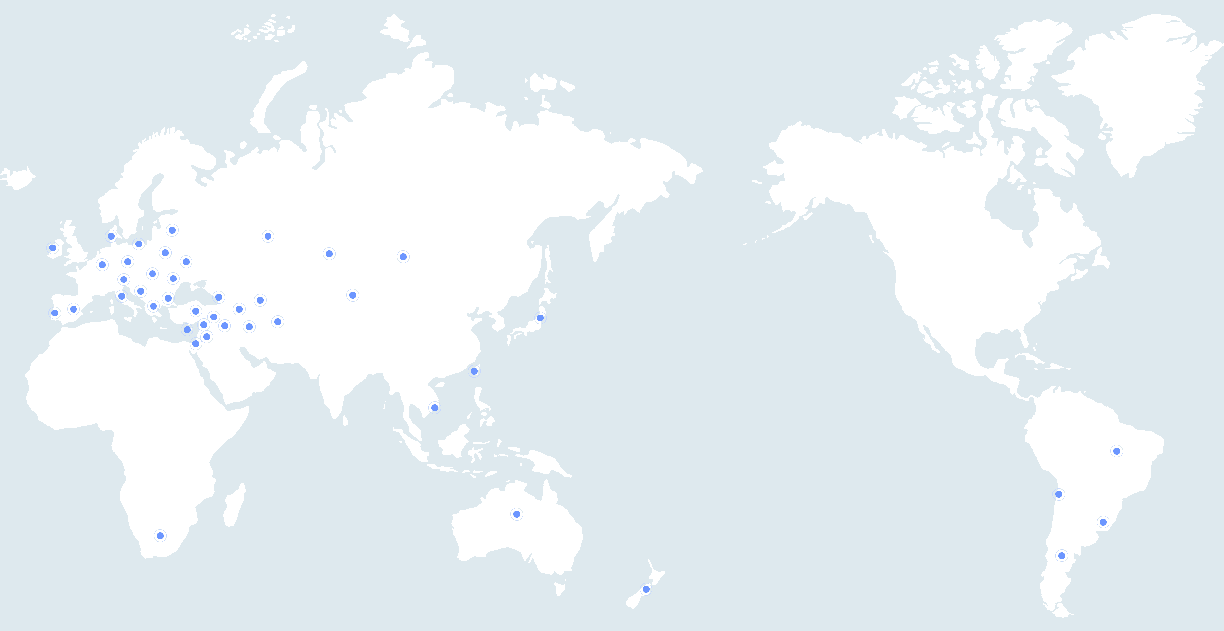 주요 진출국 : 벨라루스, 폴란드, 우크라이나, 그리스, 사이프러스, 이스라엘, 조지아, 아르메니아, 아제르바이잔, 카자흐스탄, 키르키스스탄, 몽골, 대만, 베트남, 오스트레일리아, 칠레