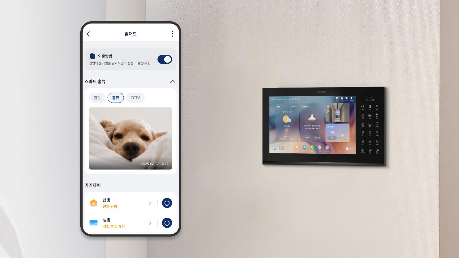 외출 시 집 안의 움직임을 감지해 보안을 강화하고, 언제 어디서나 집안을 확인할 수 있습니다.