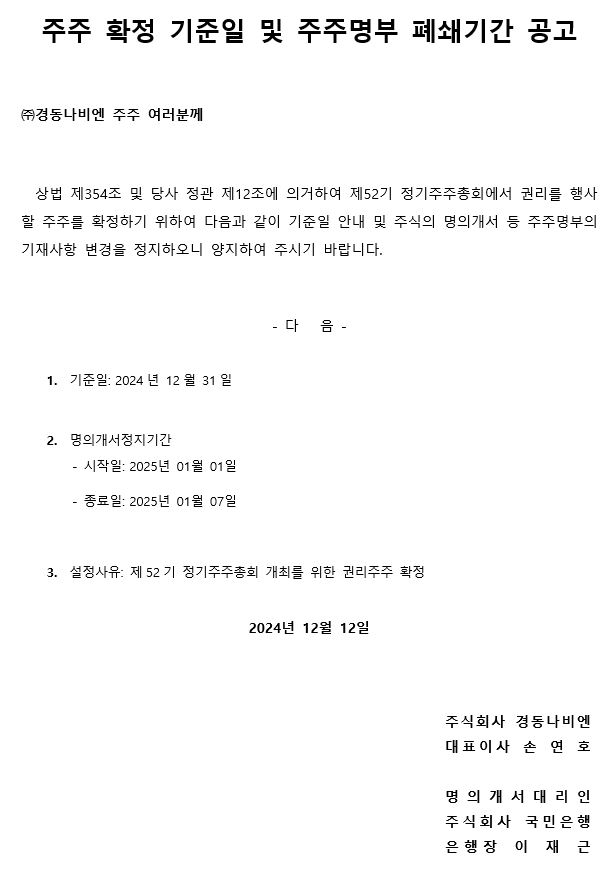 주주 확정 기준일 및 주주명부 폐쇄기간 공고