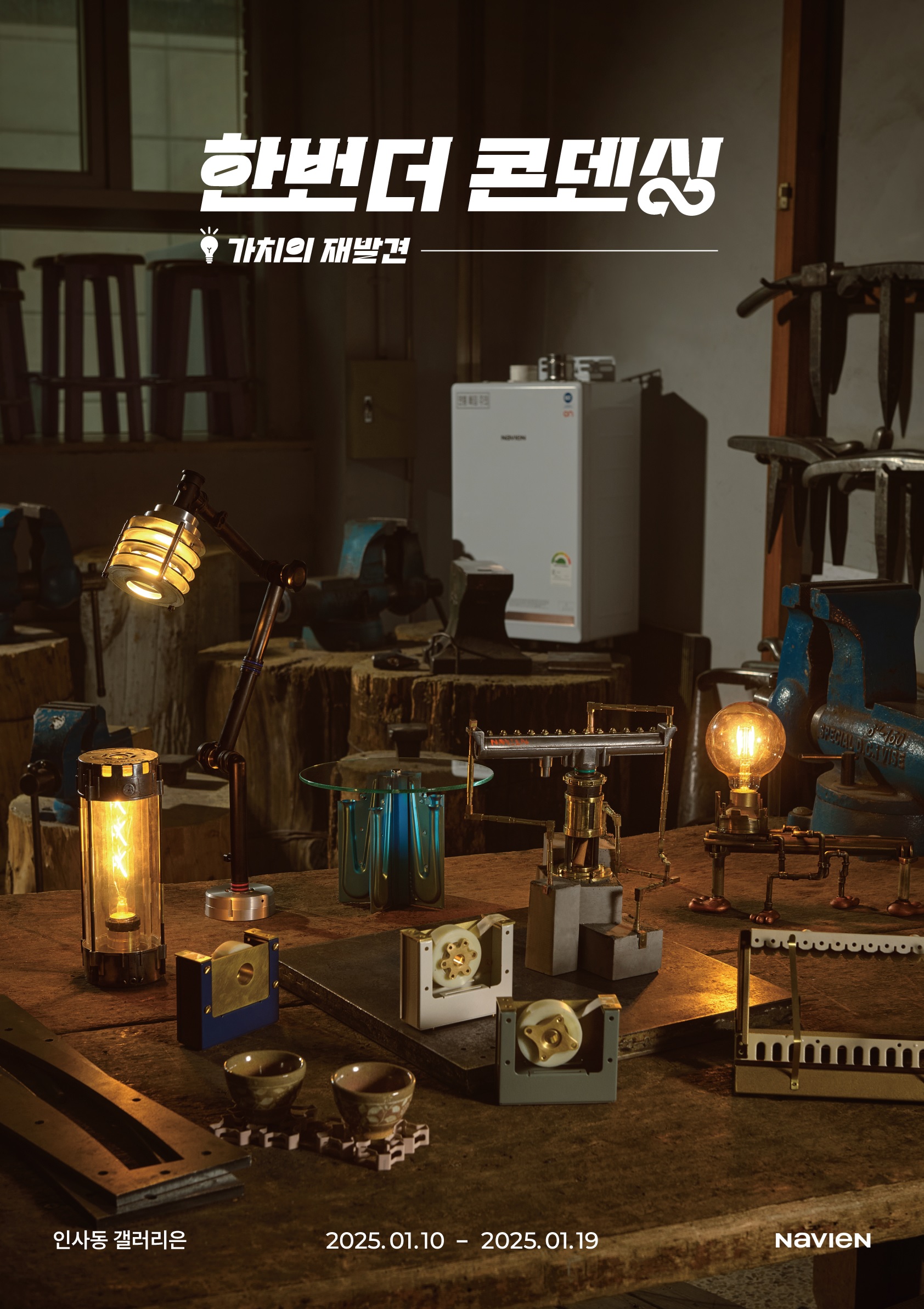 [2025-01-10] 경동나비엔이 국민대학교 금속공예학과와 함께 <한번 더 콘덴싱 : 가치의 재발견> 전시회를 개최한다. 수명이 다한 콘덴싱보일러의 부품과 자재를 학생들의 신선한 시각으로 재탄생시킨 다양한 작품을 선보일 예정으로, 10일(금)부터 19일(일)까지 인사동에 위치한 ‘갤러리 은’에서 진행된다.