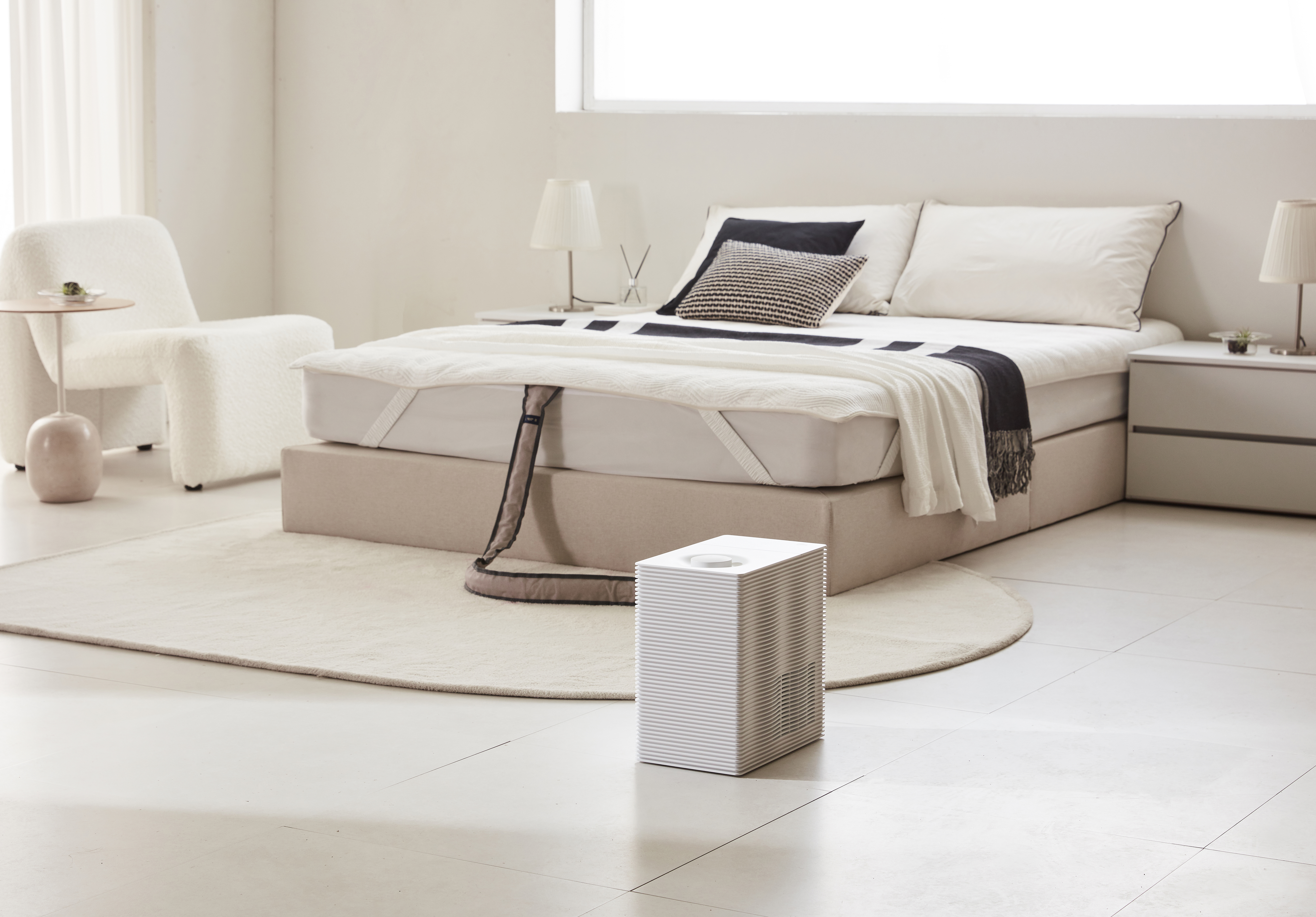 또한, 양면형 커버로 사계절 내내 편리하게 사용할 수 있다. 여름철 냉감 원단이 적용된 면을 사용하면 시원한 느낌이 더해지며, 겨울철과 간절기에는 알러지케어 원단이 적용된 면을 통해 진드기와 먼지를 차단할 수 있다. 또한, 물이 흐르는 매트도 1mm의 슬림한 두께 덕분에 배김이 없고, 매트 전체에 고르게 분포된 촘촘한 물길로 온도를 고르게 전달한다.