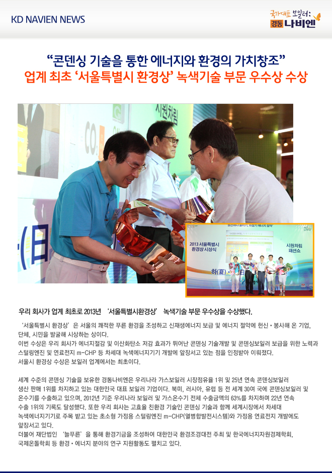 업계 최초 ‘서울특별시 환경상’ 녹색기술 부문 우수상 수상