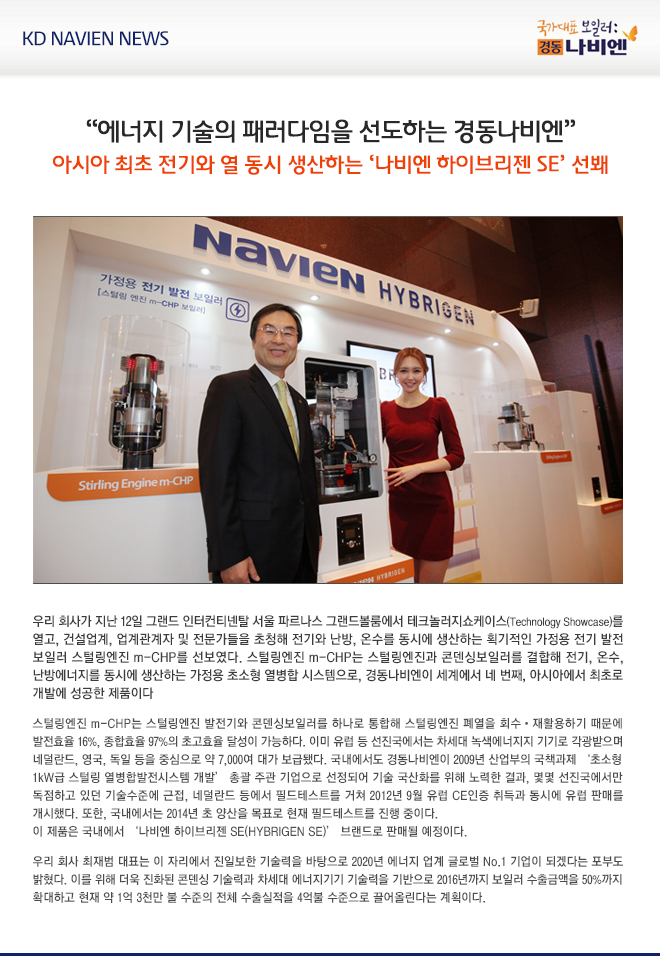 아시아 최초 전기와 열 동시 생산하는 ‘나비엔 하이브리젠 SE’ 선봬