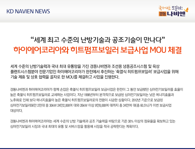 하이에어코리아와 히트펌프보일러 보급사업 MOU 체결