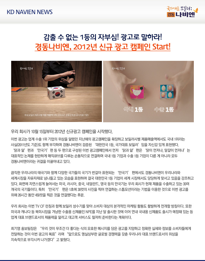 경동나비엔, 2012년 신규 광고 캠페인 Start!