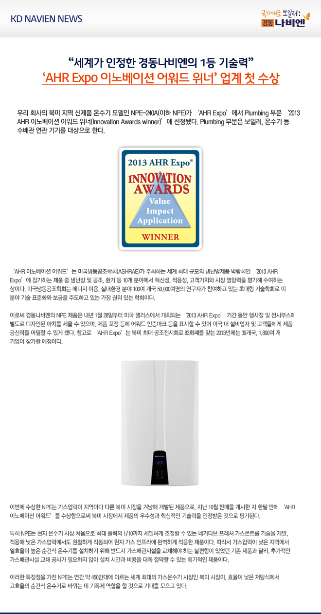 ‘AHR Expo 이노베이션 어워드 위너’ 업계 첫 수상