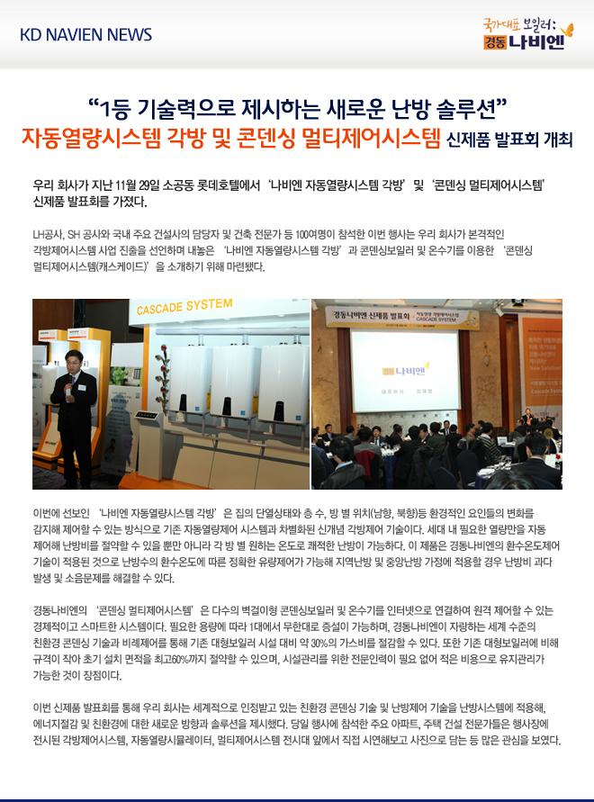 ‘자동열량시스템 각방 및 콘덴싱 멀티제어시스템 신제품 발표회 개최