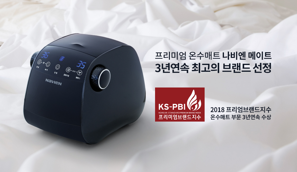 2008년 시작하여 올해로 11회째를 맞는 프리미엄브랜드지수(KS-PBI)는 한국표준협회와 서울대학교 경영연구소가 공동 개발한 브랜드 평가 제도다. KS-PBI는 브랜드의 현재가치(인지, 이미지, 편익, 리더십, 애호도)는 물론 미래가치(사회적 책임)까지 포함하여 브랜드의 지속가능성을 예측하고, 신뢰성 및 이용가치를 높인 프리미엄브랜드를 선정한다. 나비엔 메이트는 2016년 신설된 온수매트 부문에서 첫 수상자로 선정된 후 한 번도 수상을 놓치지 않아, 프리미엄 온수매트의 가치를 다시금 인정 받았다.