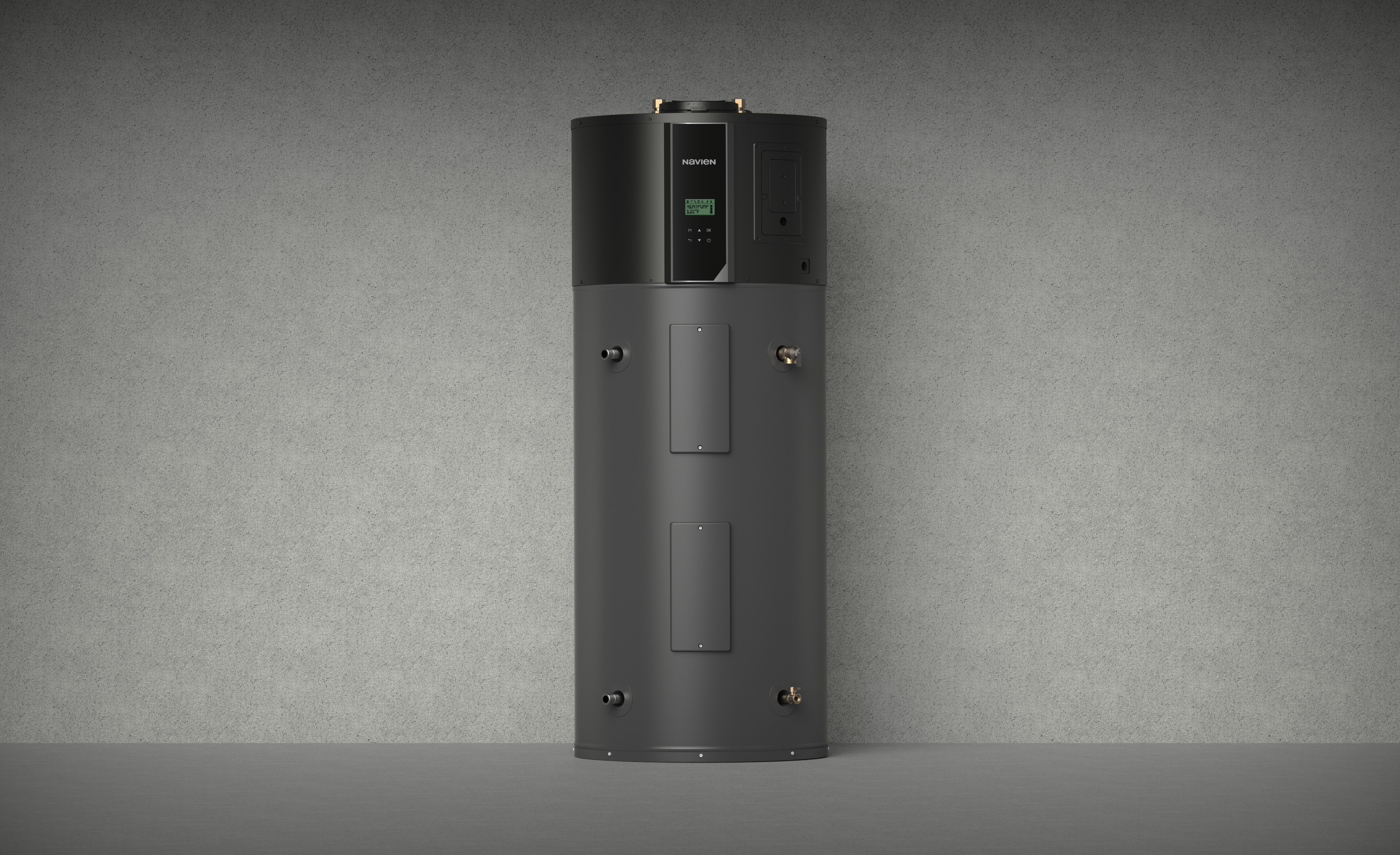 首先,代表获奖作品是“热泵热水器(NWP500)”。这是一款应用“热泵”技术的热水器,即利用电能驱动技术,从空气、土壤、水源等自然界中吸收热量后用于制冷或供暖。庆东纳碧安从热泵热水器的设计着手,大幅提升设备商和消费者的便利性。热泵热水器的上端和侧面都可以连接配管,面对空间狭窄的地方或各种不同环境,只需把位于侧面的吸排气部移动到产品上端,就能轻松完成安装。设计的另一大特点是用户友好性。通过精确分析用户的平均身高和视角,将控制面板放置在最佳位置。不仅如此,在按钮和显示屏的布局上也充分考虑到了可读性和操作性。